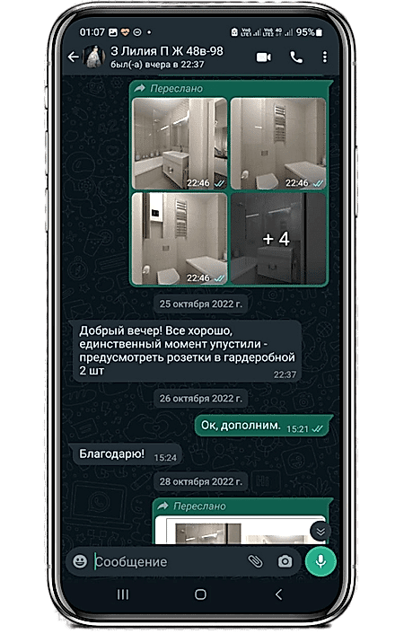 У нас большой опыт работы с иногородними Заказчиками. Вся Pin Up о ходе ремонта (фото, видео отчеты, скрины и сканы документов) передаются и согласовываются посредством электронной почты или мессенджеров.