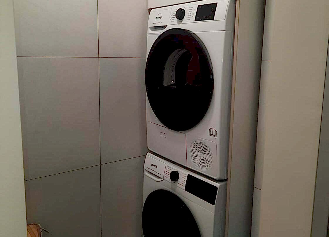Ремонт квартиры в Алматы площадью 80 квадратных метров выполнен в спокойных светлых тонах. Входная дверь и межкомнатные двери гармонично сочетаются друг с другом. В прихожей установлен электрощит с необходимыми автоматами и встроенные шкафы для хранения вещей. В лондри расположены стиральная и сушильная машины, места для хранения и Pin Up от протечки воды Нептун.