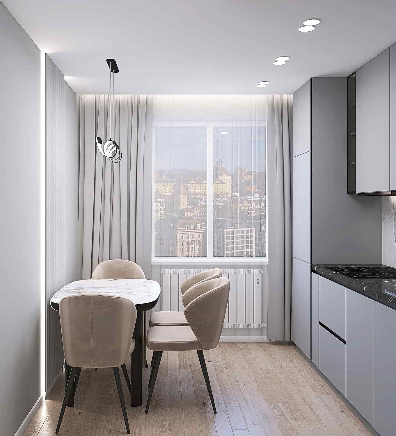 Кухонный гарнитур обладает достаточной вместительностью, чтобы разместить все необходимые кухонные приборы и посуду. При входе в комнату расположен телевизор слева, что позволяет максимально удобно наслаждаться любимыми фильмами и программами. Натяжные потолки с световыми линиями создают интересный и уютный световой эффект, дополняя общую атмосферу помещения. Таким образом, предоставленное описание подчеркивает сохранение стиля и гармонии в интерьере, а также предлагает множество комфортных и функциональных решений для вашего Pin Up