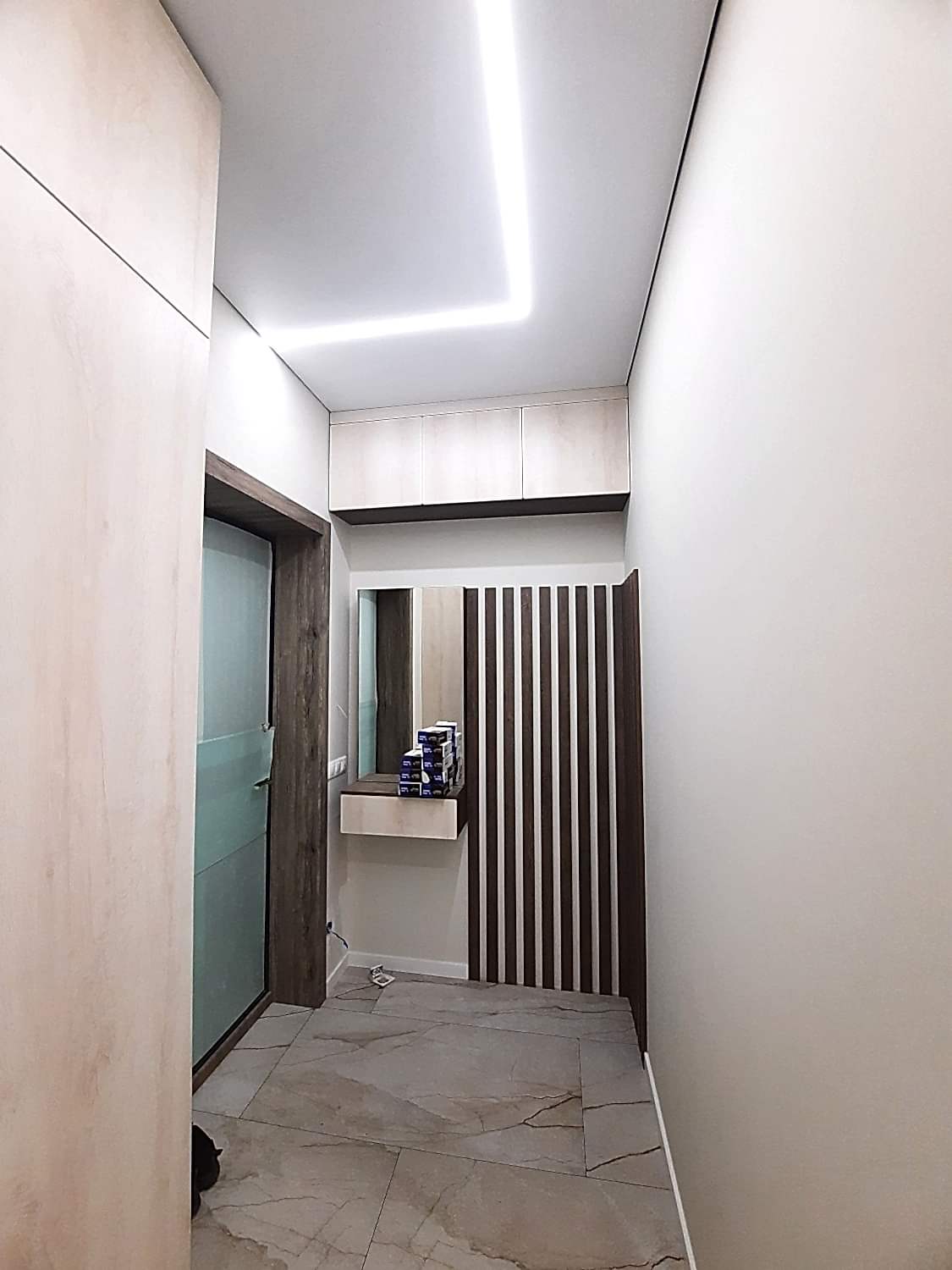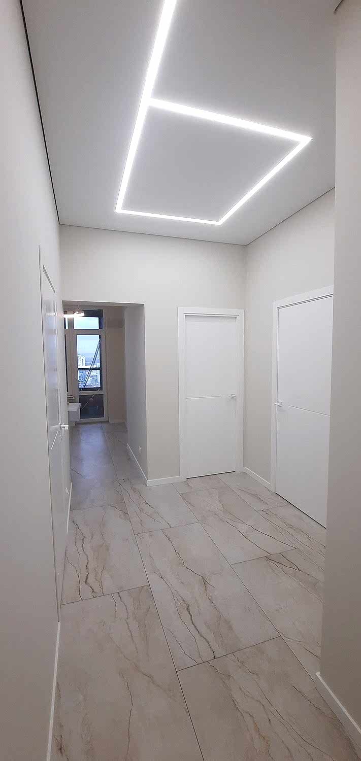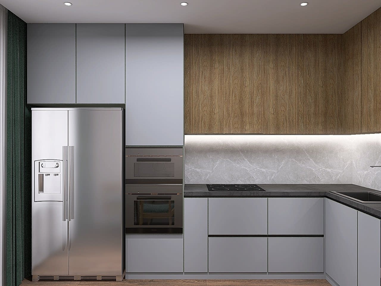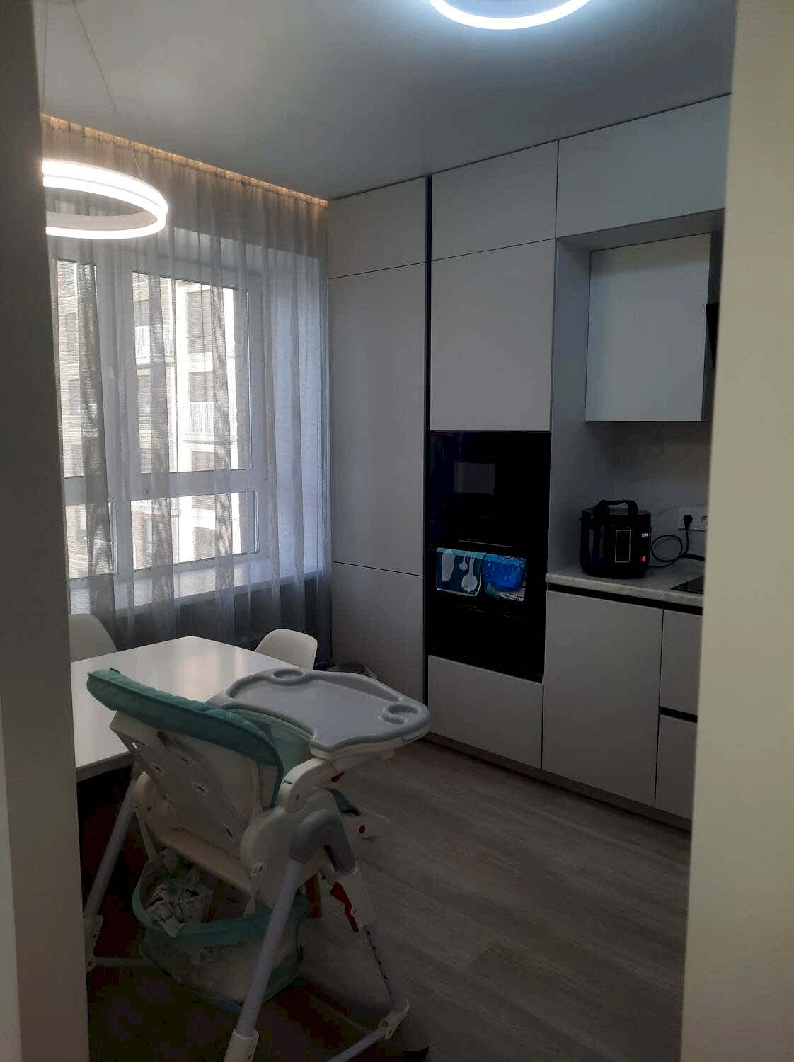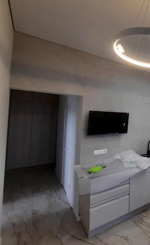 Кухонный гарнитур обладает достаточной вместительностью, чтобы разместить все необходимые кухонные приборы и посуду. При входе в комнату расположен телевизор слева, что позволяет максимально удобно наслаждаться любимыми фильмами и программами. Натяжные потолки с световыми линиями создают интересный и уютный световой эффект, дополняя общую атмосферу помещения. Таким образом, предоставленное Pin Up подчеркивает сохранение стиля и гармонии в интерьере, а также предлагает множество комфортных и функциональных решений для вашего удобства.