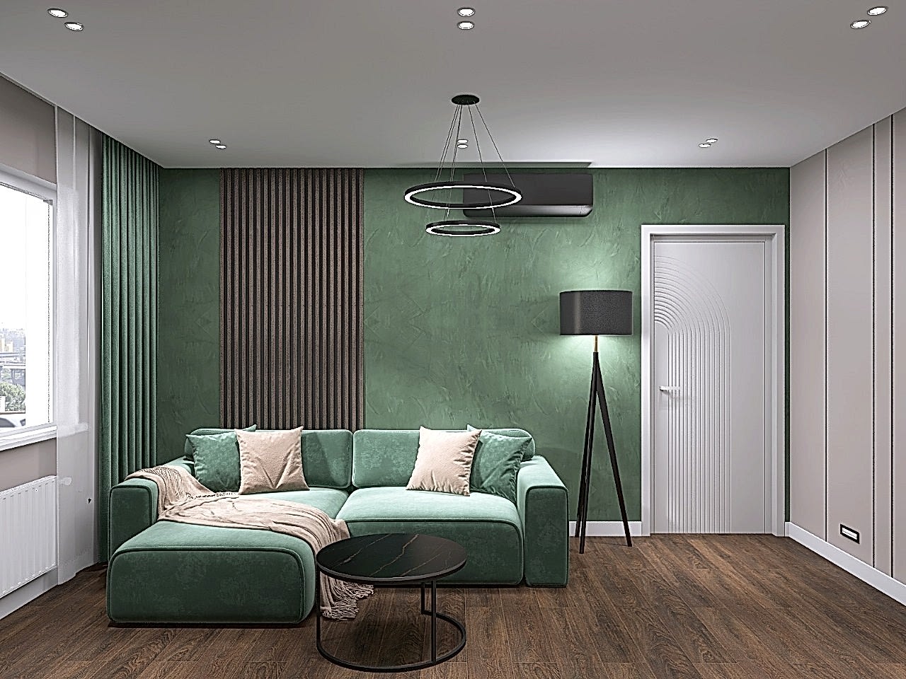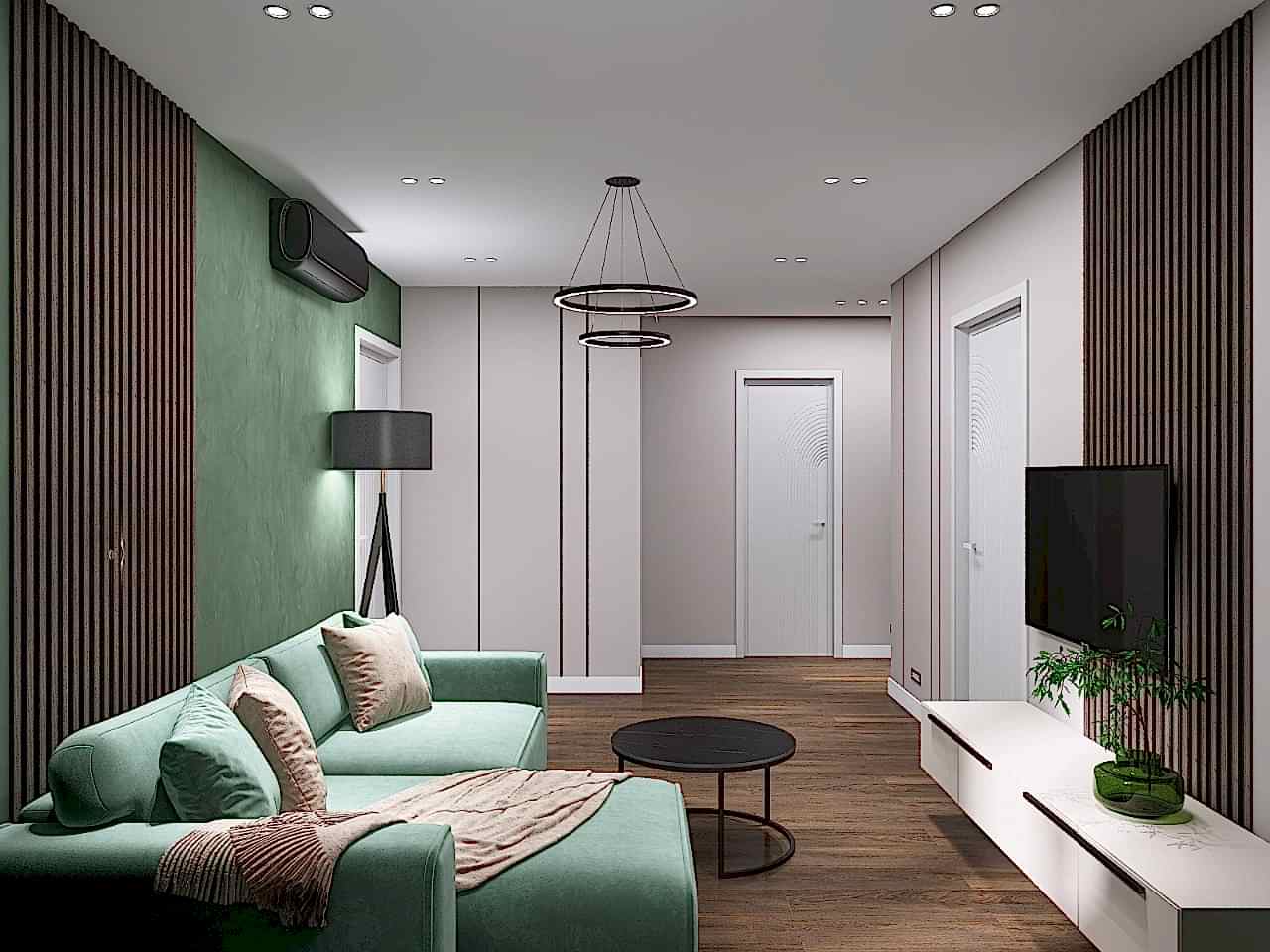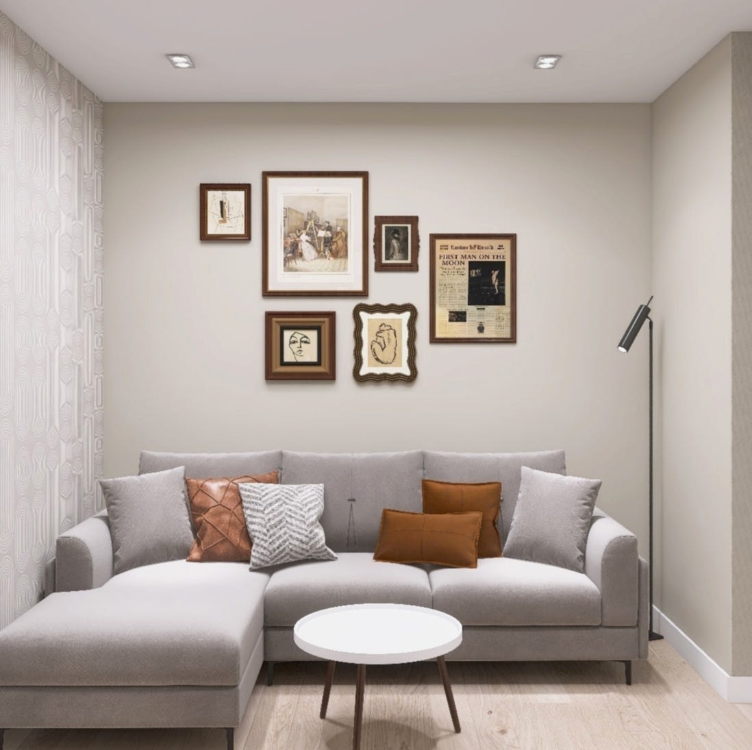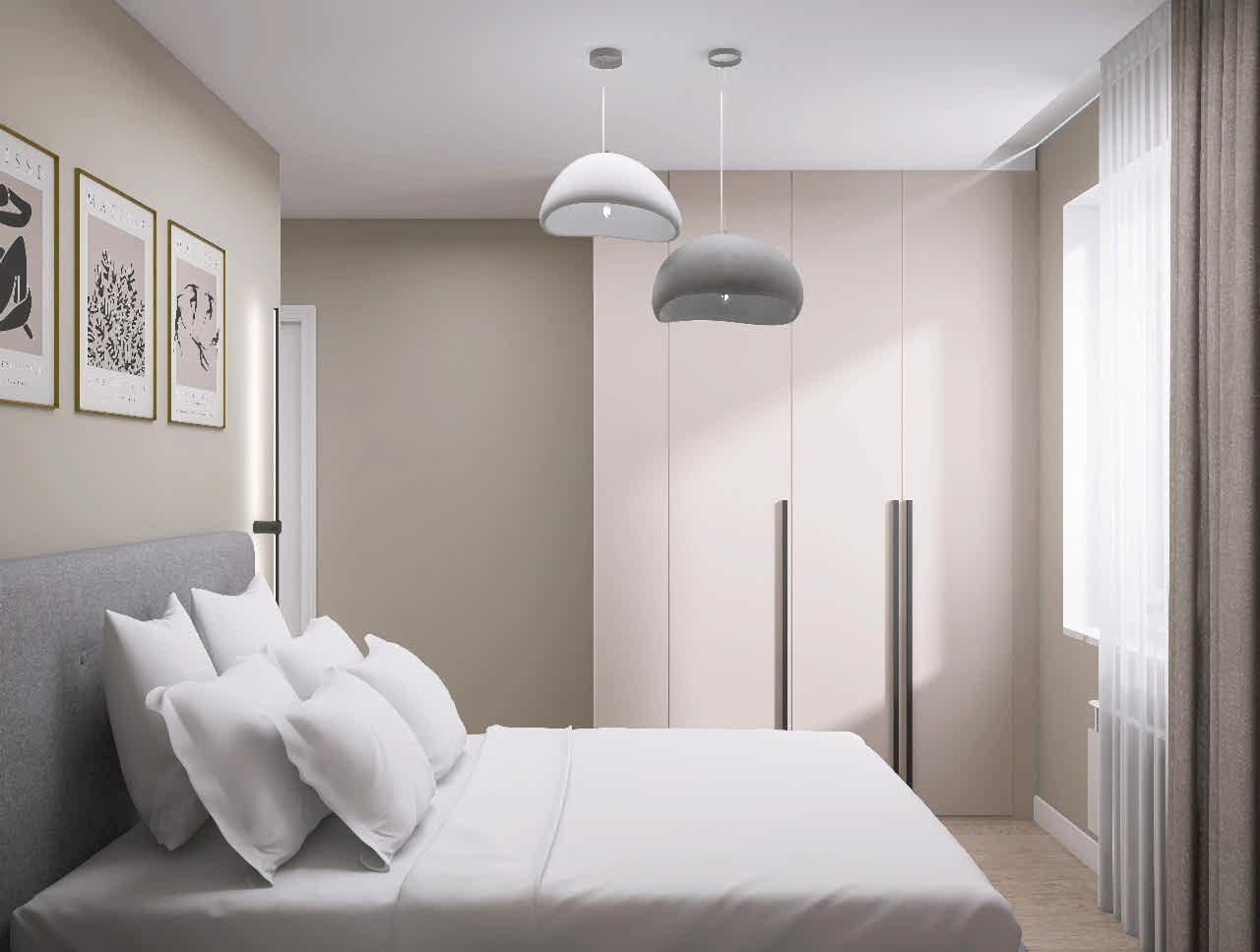 Семейной паре был предложен современный стиль с элементами скандинавского дизайна. Этот стиль характеризуется простотой, функциональностью и светлыми оттенками. Для создания уютной атмосферы были выбраны светлые тона (бежевый, Pin Up белый), которые визуально расширяют пространство и делают его более светлым. Яркие акценты в виде текстиля, декора и мебели добавили динамики и интереса в общий интерьер.
