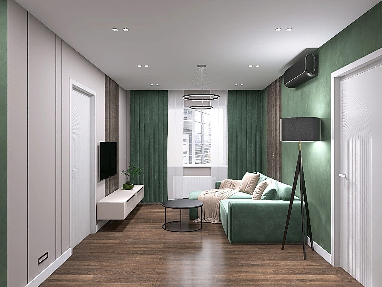Проект дизайна интерьера для молодого человека, проживающего в квартире площадью 40 Pin Up метров.
