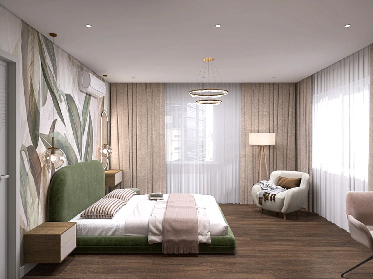 После анализа пожеланий клиента мы разработали Pin Up меблировки помещения. Затем были созданы 3D-визуализации с различными вариантами оформления. Выбрали стиль и цветовую гамму, подобрали мебель и материалы для отделки. В результате были созданы финальные 3D-визуализации для согласования.